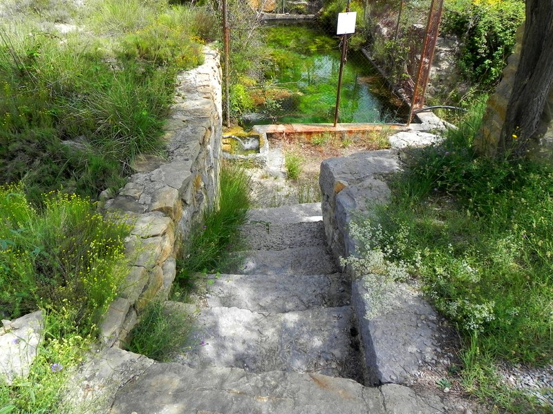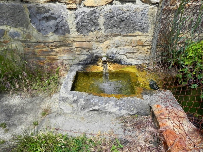 Fuente con merendero provisto de mesas y sillas de piedra.